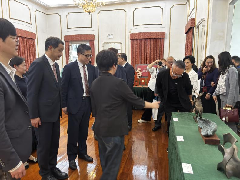 此次出访,湖北美术学院组建9人师生团队,紧扣活动主题打造三大特色交流项目。在香港理工大学、澳门岗顶剧院举办专题艺术展,展出雕塑、版画、漆艺等35件(套)精品力作,全方位展现荆楚艺术底蕴;开设版画、扎染、小型浮雕三大艺术工作坊,邀请港澳群众现场互动创作,以沉浸式体验推动文化共情;先后赴香港理工大学、香港中文大学、澳门大学开展校际交流,探讨学科建设与合作方向,搭建艺术教育长效合作平台。