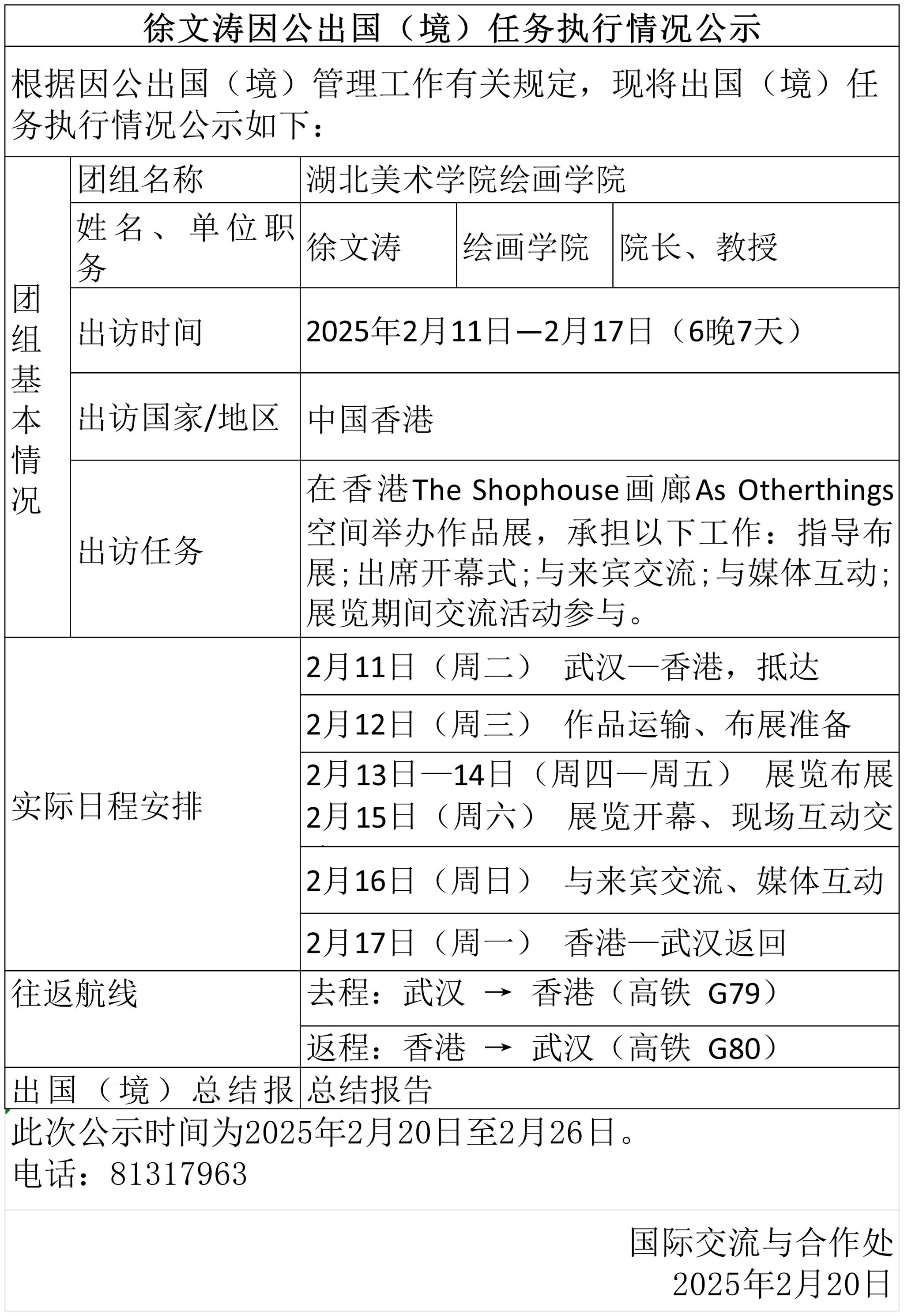 徐文涛因公出国(境)任务执行情况公示