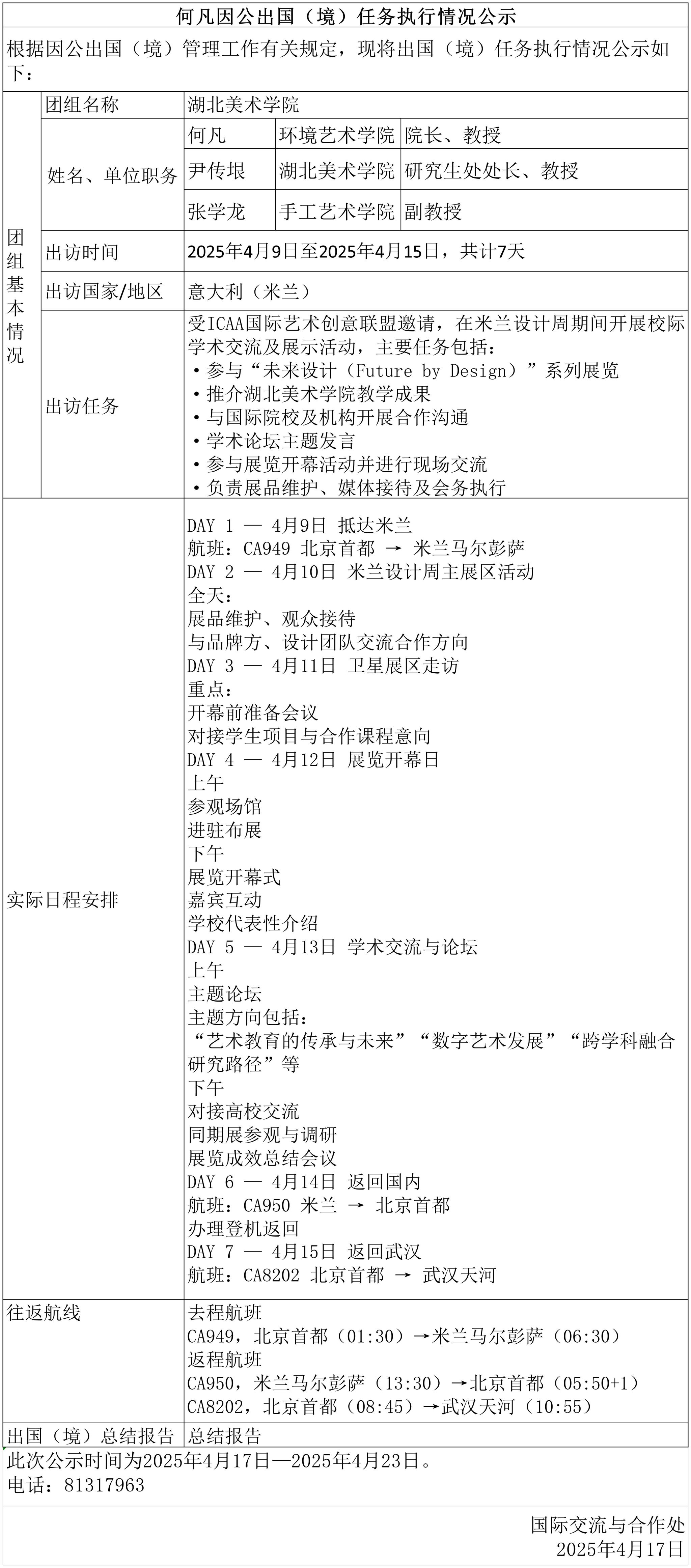 何凡因公出国(境)任务执行情况公示