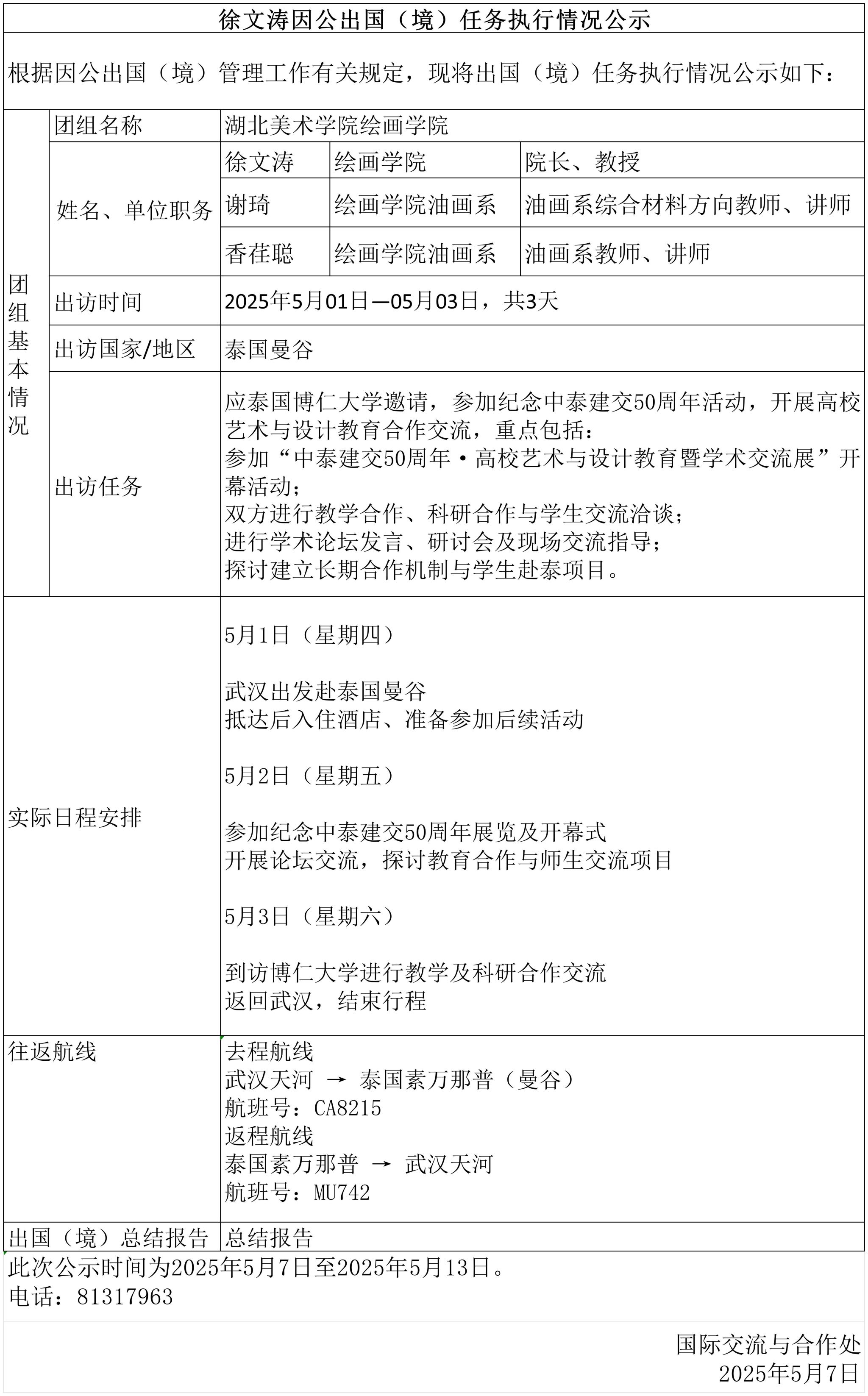 下一篇:湖北美术学院教职工因公出国(境)信息公示表(阳芷倩)