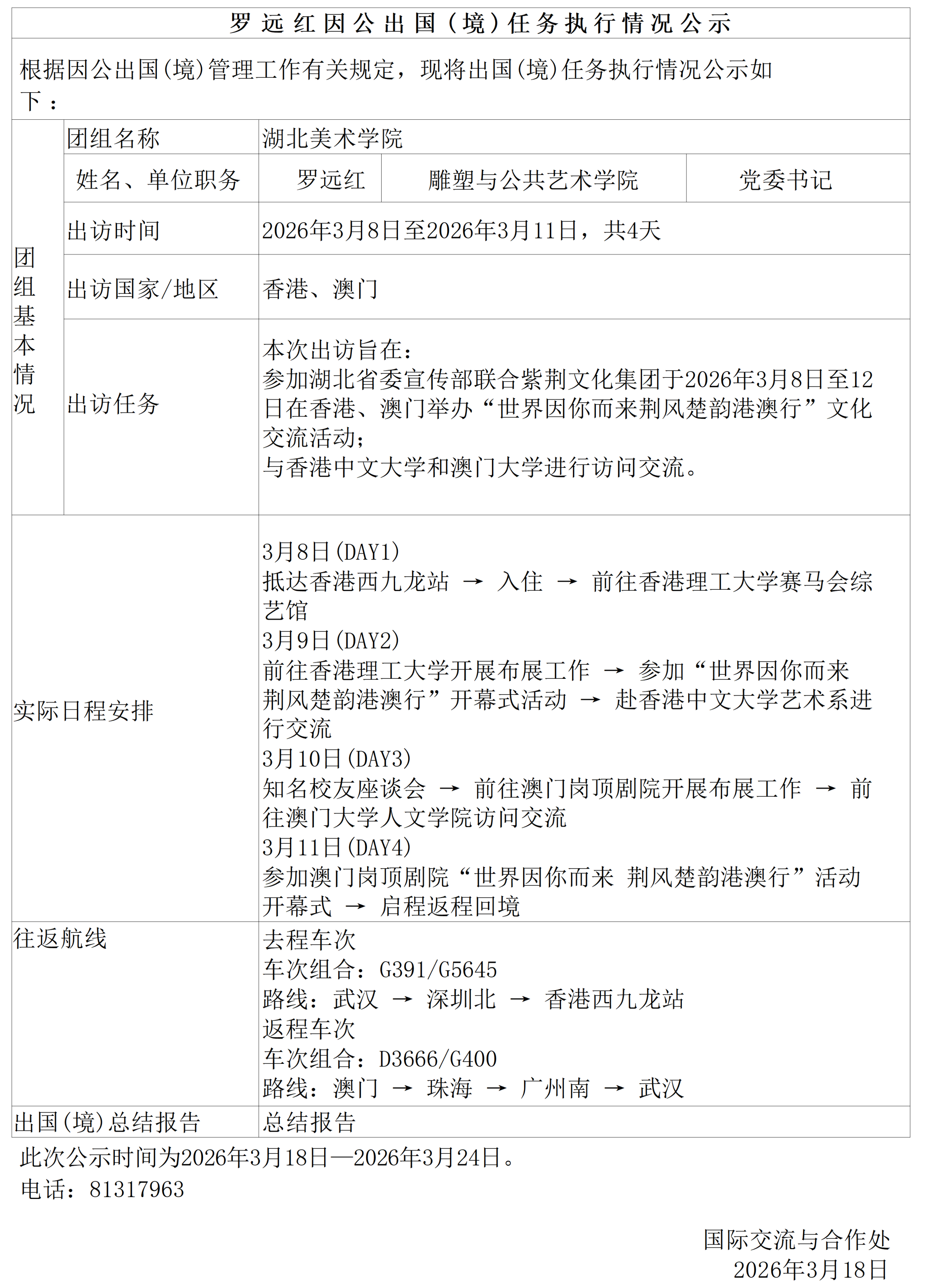 下一篇:湖北美术学院教职工因公出国(境)信息公示表(罗远红)